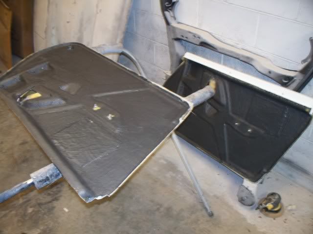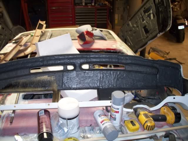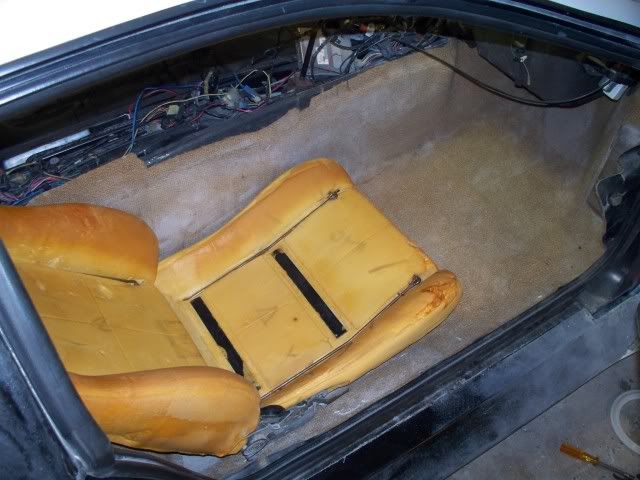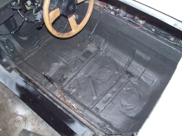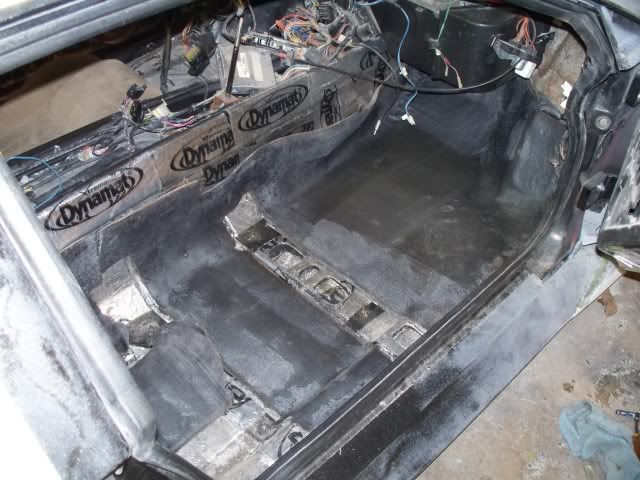 here are some pic's that I took last night. I finished all the sound proofing on the inside of the car and started test fitting the dash and door pannels as well as the seats. I am still not sure if I am going to use the stock Fiero seats but I want to get them as low as I can in the car so I don't hit my head on the roof. the whole inside of the car has been done in Dynamat and then painted over with the edead.