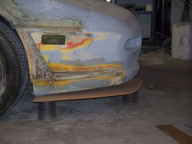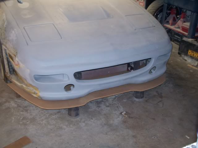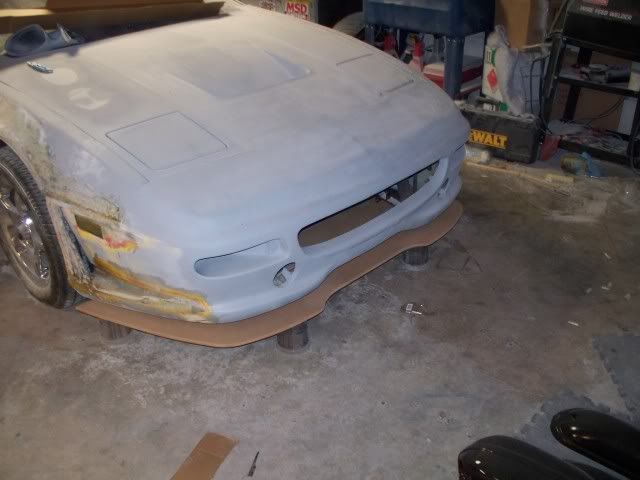 Finaly a real update! last night I worked on the car for a few hrs. first I worked on the carpet I was able to remove the padding from the carpet without damage so I could re use it with new carpet. next I made a glove box and did a few other tweaks on the doors that I will get more into later. while I was waiting for the fiberglass to dry I worked on the frontend, I know you will all like this one when I get it done but here are some pics from the start of it. I cut out the MDF to the size and shape that I wanted then I fitted it to the car I don't want to go any farther out or lower with it because I would like it to stay on the car.