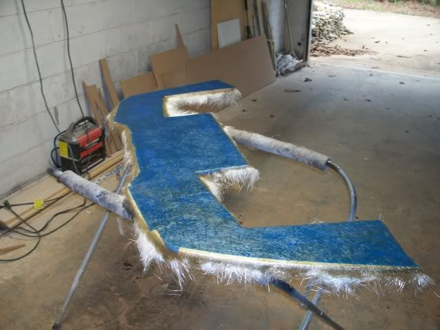 last night I worked on the front lower. I made a pattern using 5/8 MDF to get the shape then once I was happy with it I took it and used a trick that my friend taught me if you tape over the wood and then fiberglass it it makes it easy to remove the fiberglass from the wood. I don't want to leave the wood in because it makes it heavy and the wood would take on water so I just used it for the shape. once the bottom is done I will mock it back up under the nose and do the top part of the glass. I will make it removeable so if I hit something I can take it off and fix it.