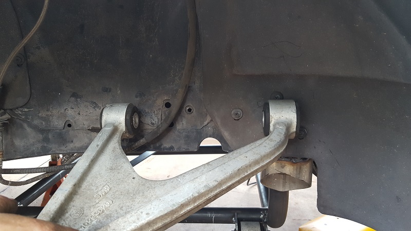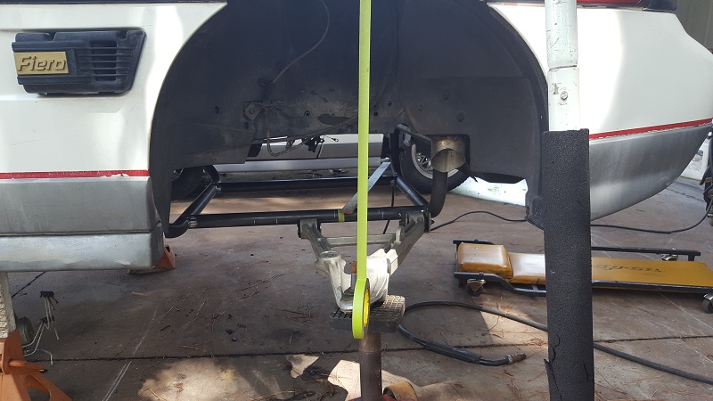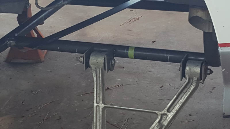 I think right now the transverse spring will stay in. The spring rate might change depending on how it goes. He did make some marks and adjustments again. The front wheels sit a little more center to the wheel wells. He's got more he wants to do before he decides it's ready to have the new new mounts welded on.