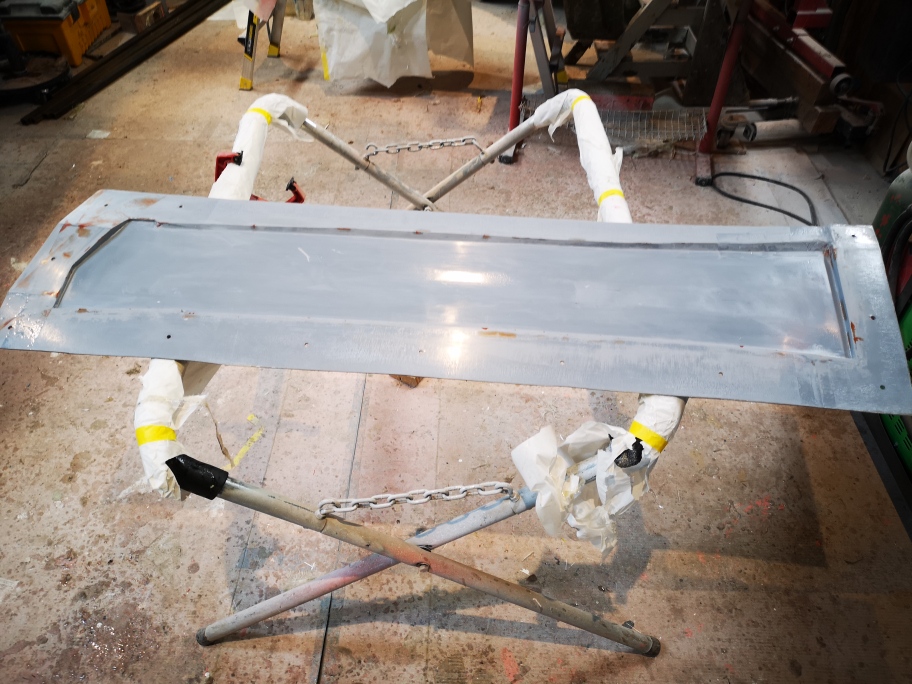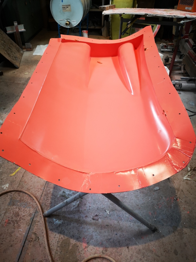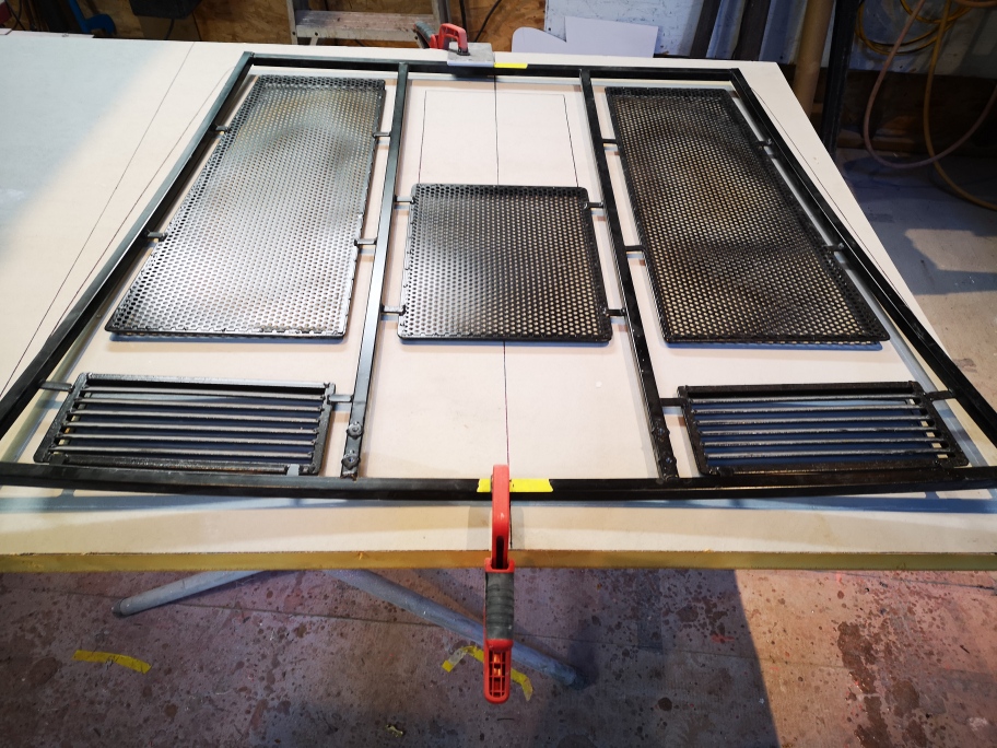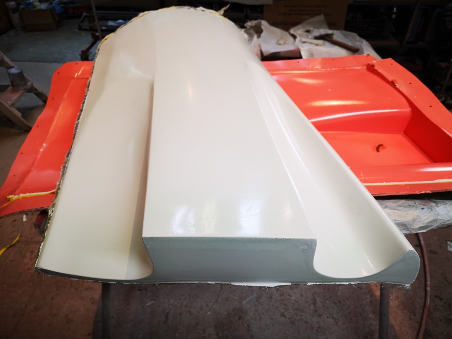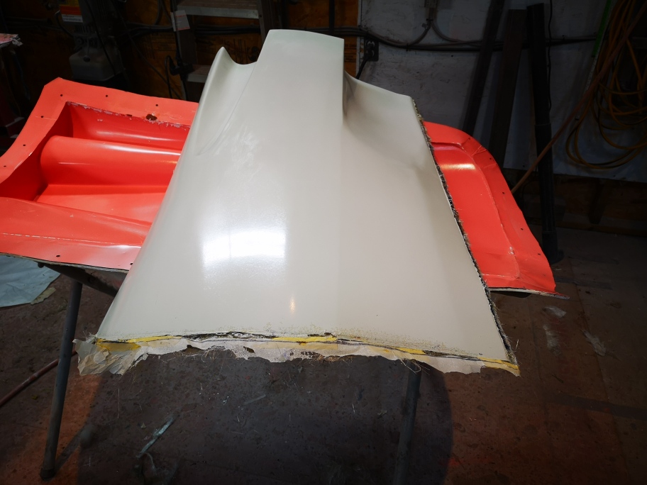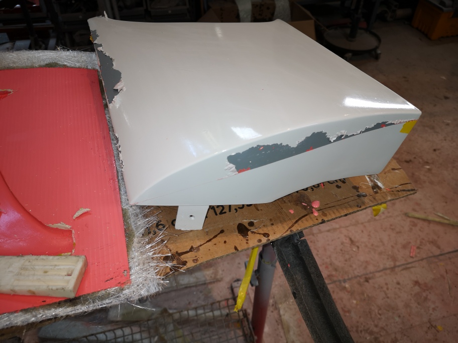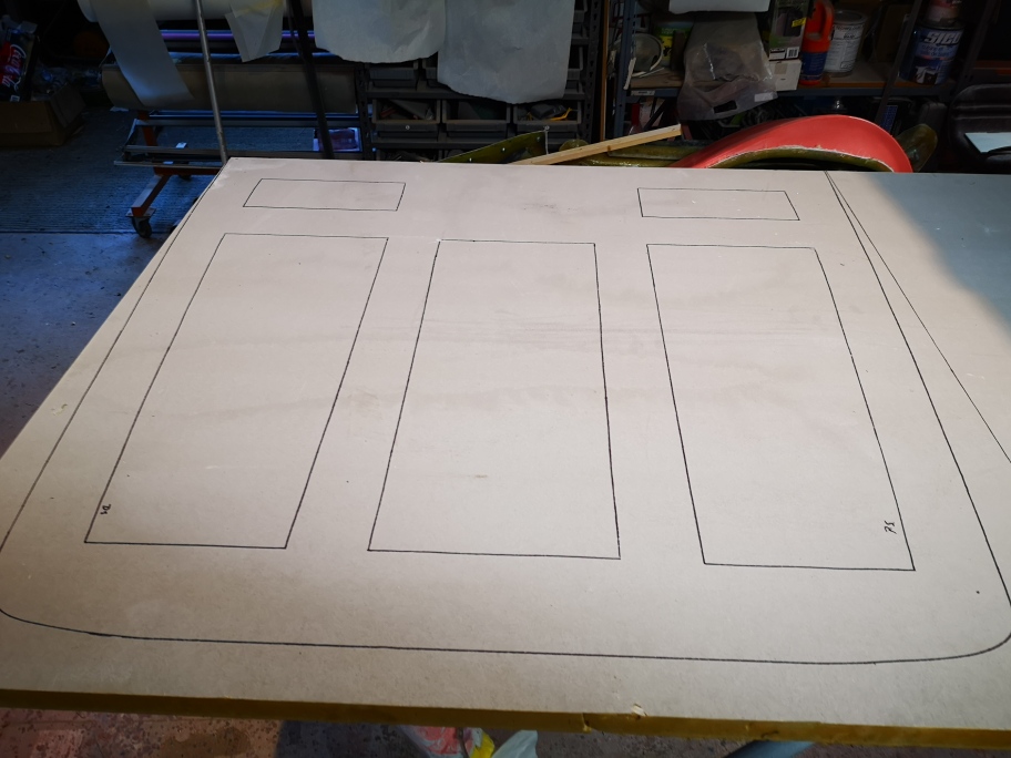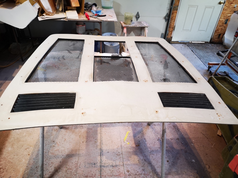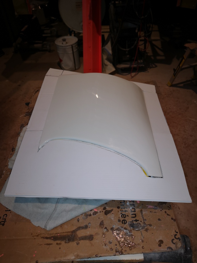 Although the rear engine hood works and is functional it isn't correct looking ,and with the steel frame I feel is too heavy. So I've decided to design and build a new one that will use the frame of the hood itself as at the structure and the vents will attach to the side walls of the openings. just as the OEM car uses. There are compound curves in two directions front to back as well as left to right at the back by the spoiler. I've cut it all out but can't continue until I have the rear body out of the mold. ( coming soon)