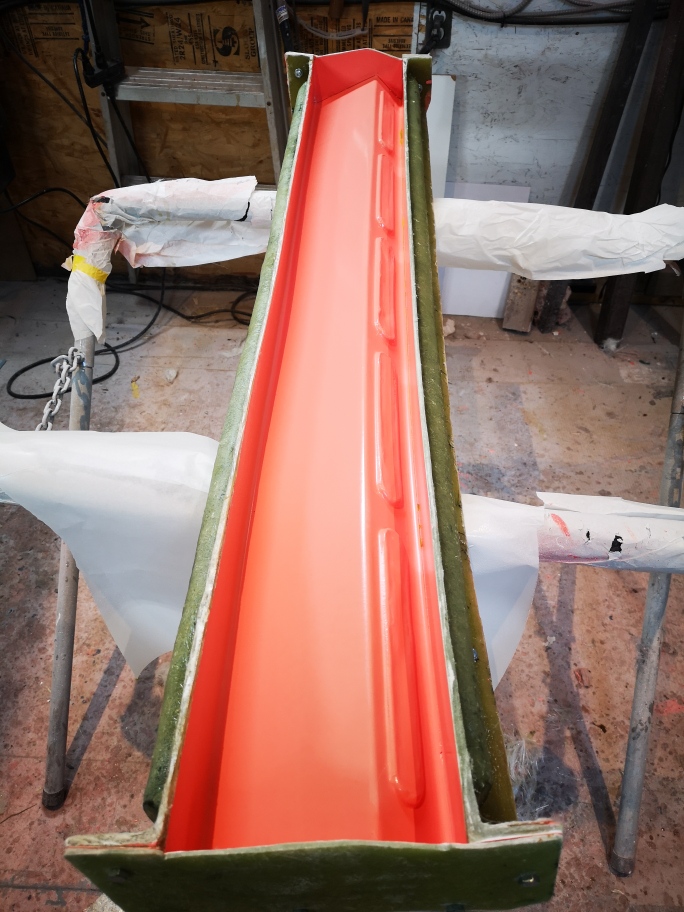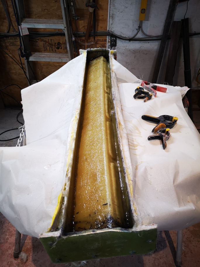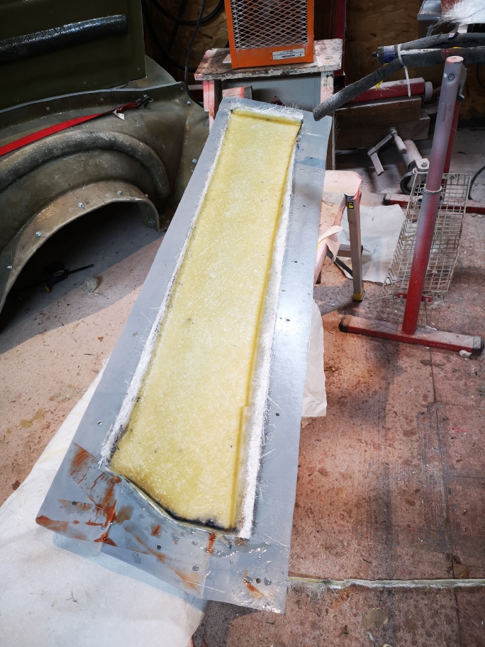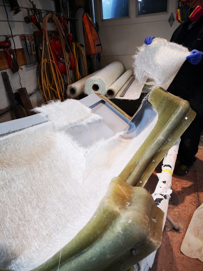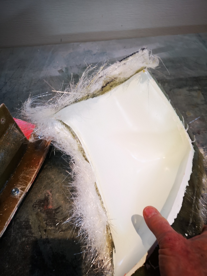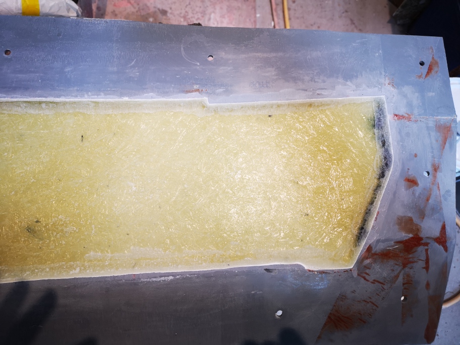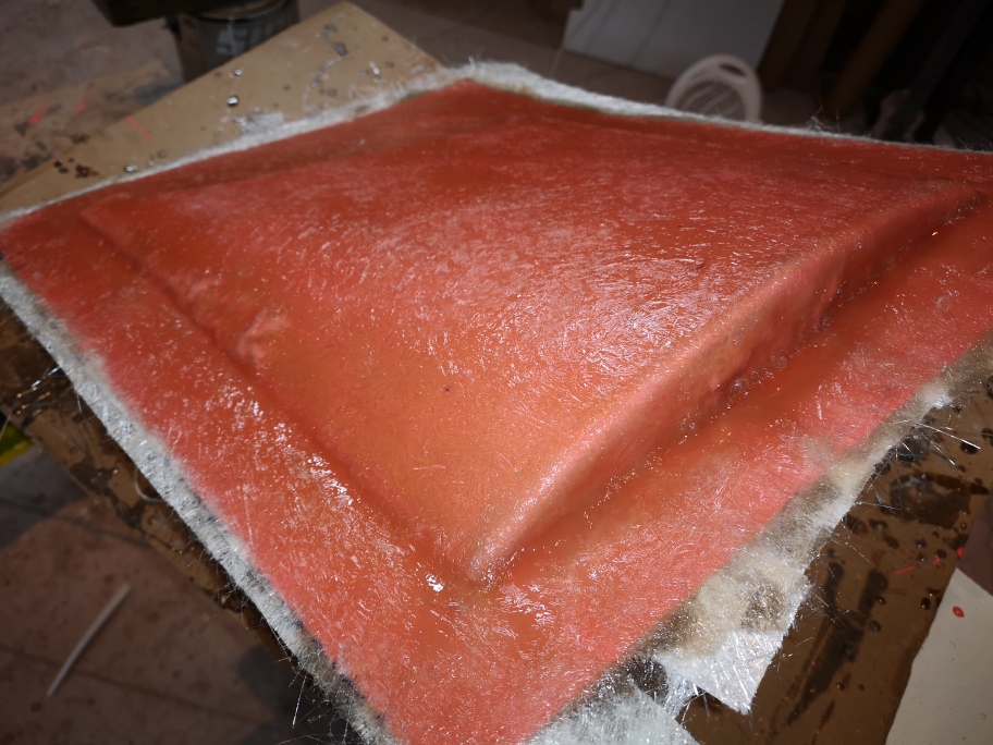 I used 4 layers of 1 1/2oz mat with a extra layer on the top and the ends for attachment points.