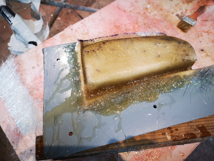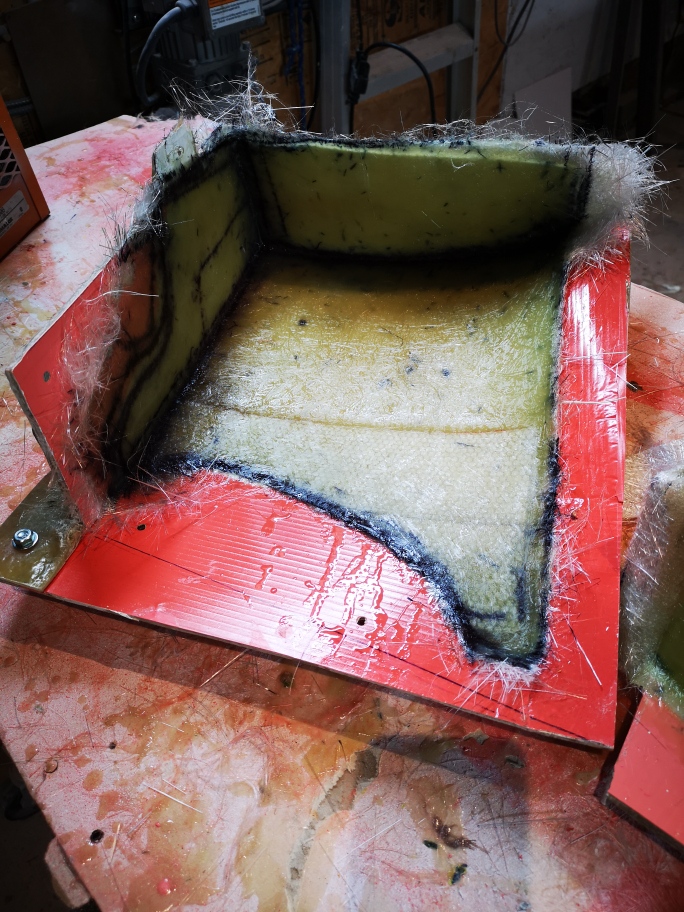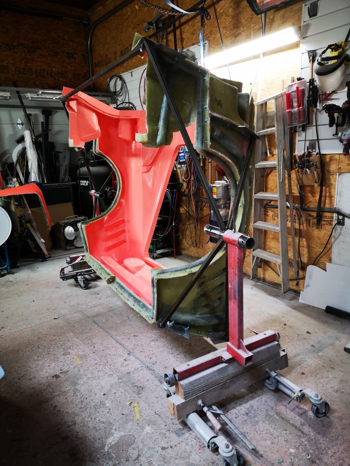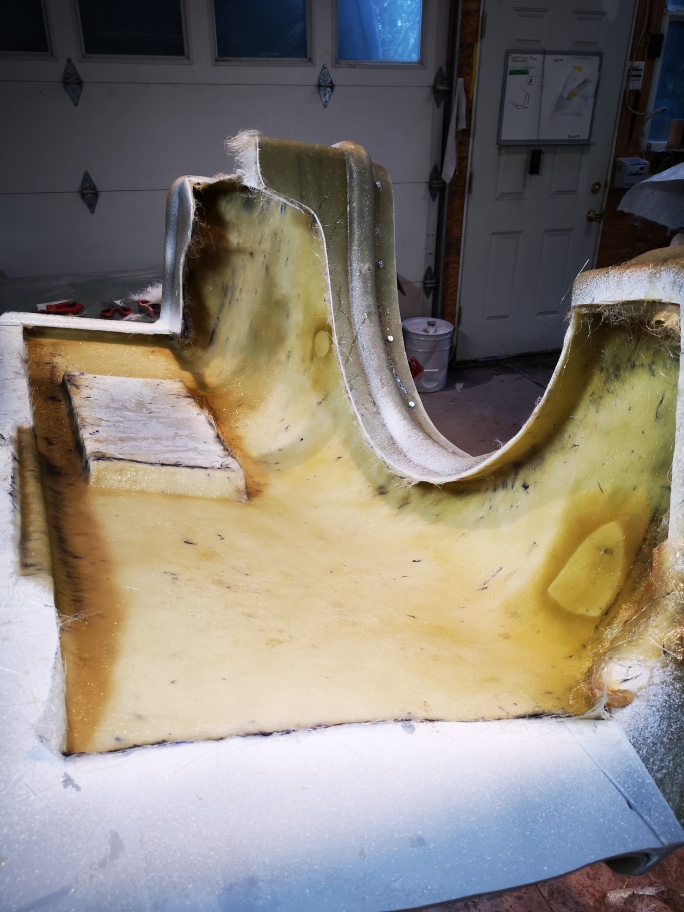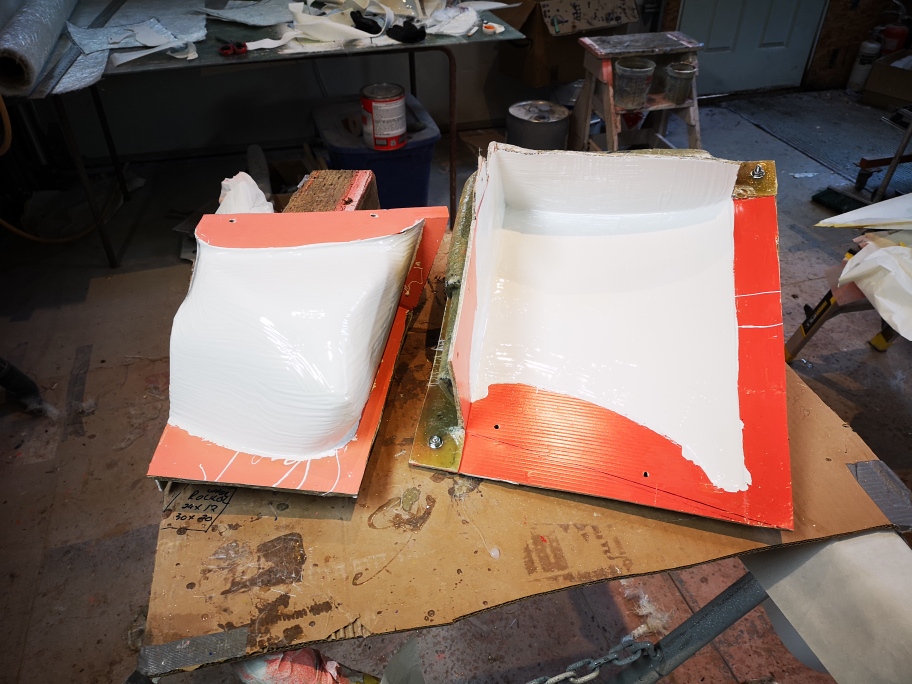 Sorry everyone for the long delay on a update, I've been very busy over the last few weeks helping a couple buddies Don O. and another friend with their projects. I was helping Don mold a Lambourgini Countach OEM interior for a future project for him, It all went very well molding the15 pieces. Once it was finished I started up laying mat into my molds to build my body, the molds have fully cured and are ready.... I started on the front spoiler as it was already handy and a good starting point.
