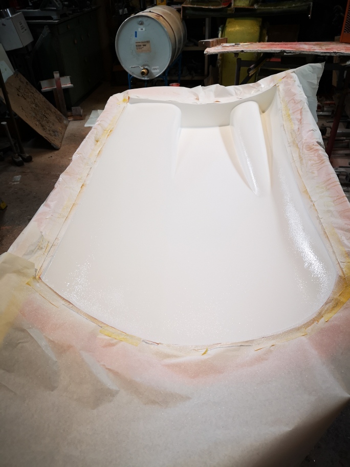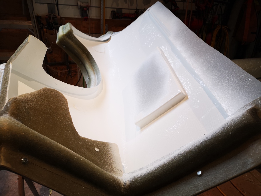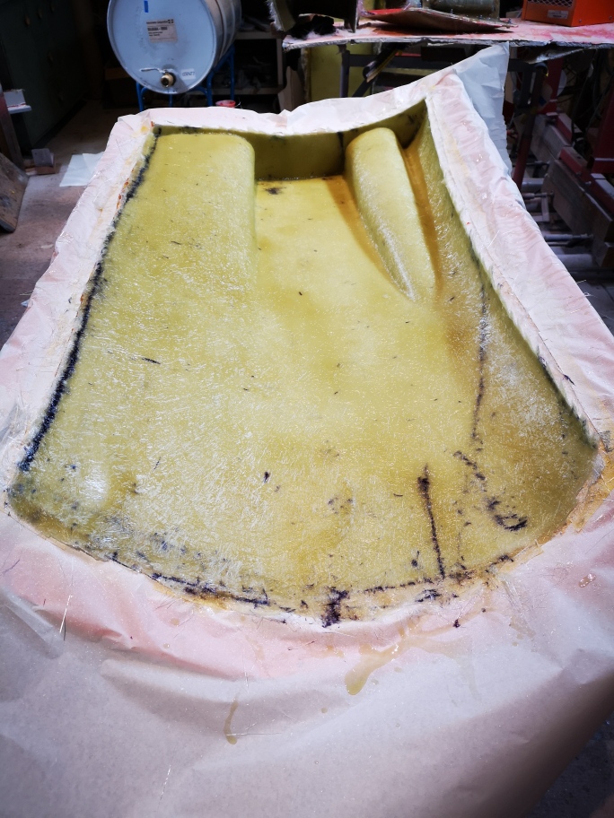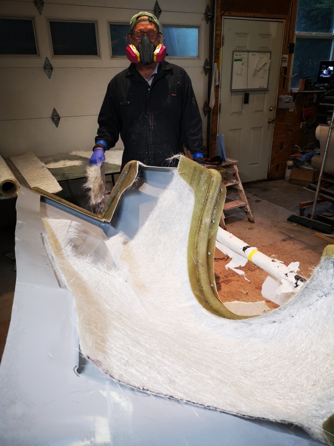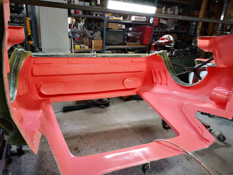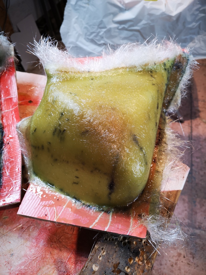 Sorry everyone for the long delay on a update, I've been very busy over the last few weeks helping a couple buddies Don O. and another friend with their projects. I was helping Don mold a Lambourgini Countach OEM interior for a future project for him, It all went very well molding the15 pieces. Once it was finished I started up laying mat into my molds to build my body, the molds have fully cured and are ready.... I started on the front spoiler as it was already handy and a good starting point.