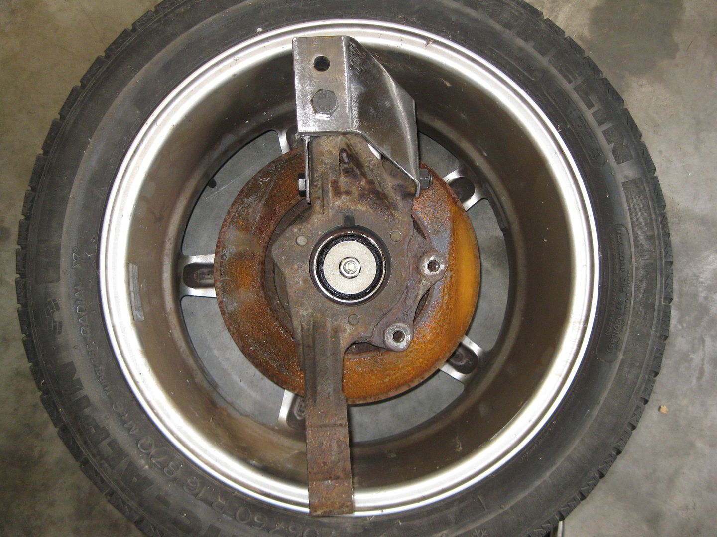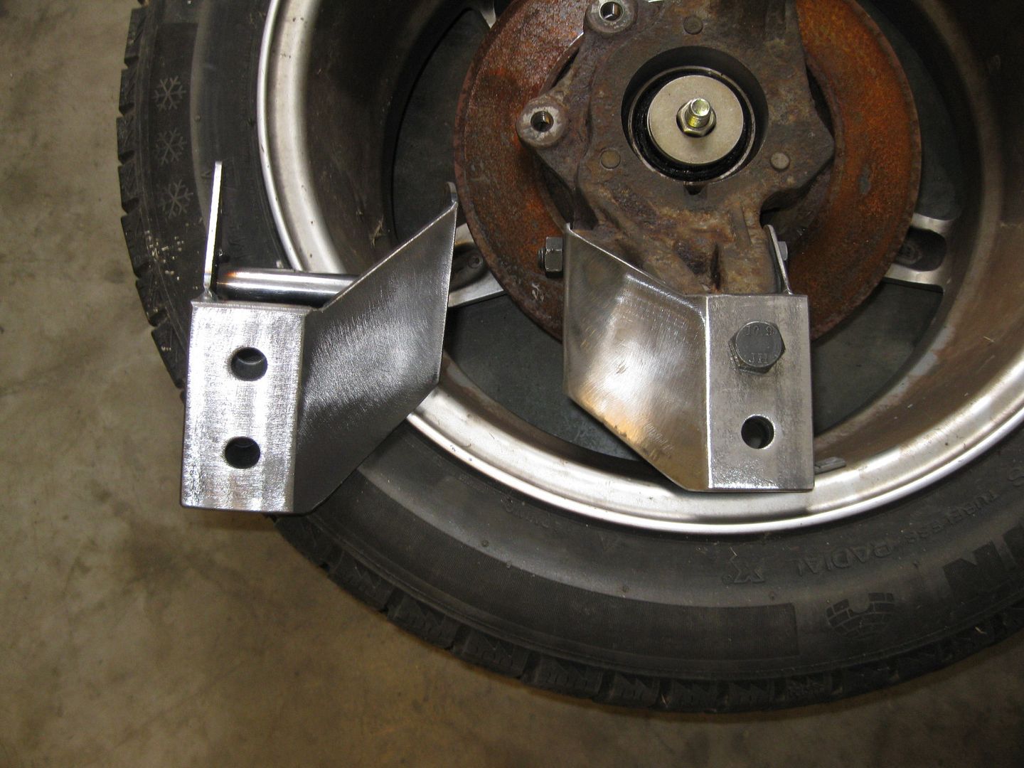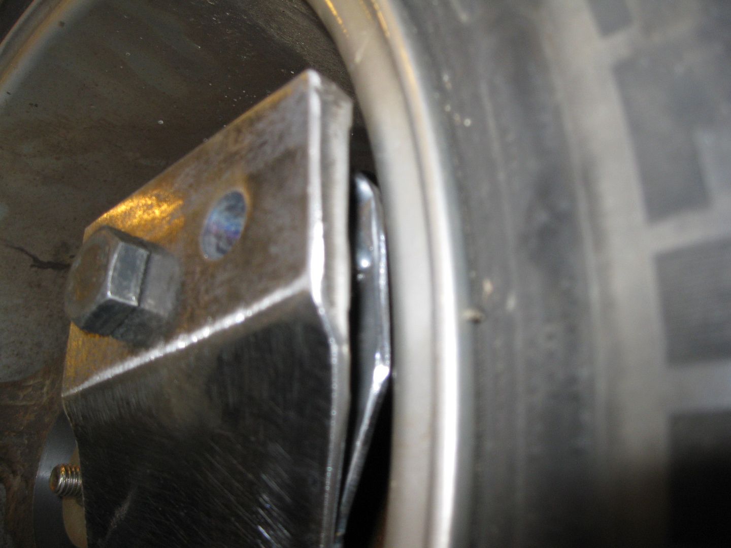 I finished the other side and modified the backing plate slightly (made it flat across the bottom) so they will now clear a 16 x 7 wheel (38mm offset):
