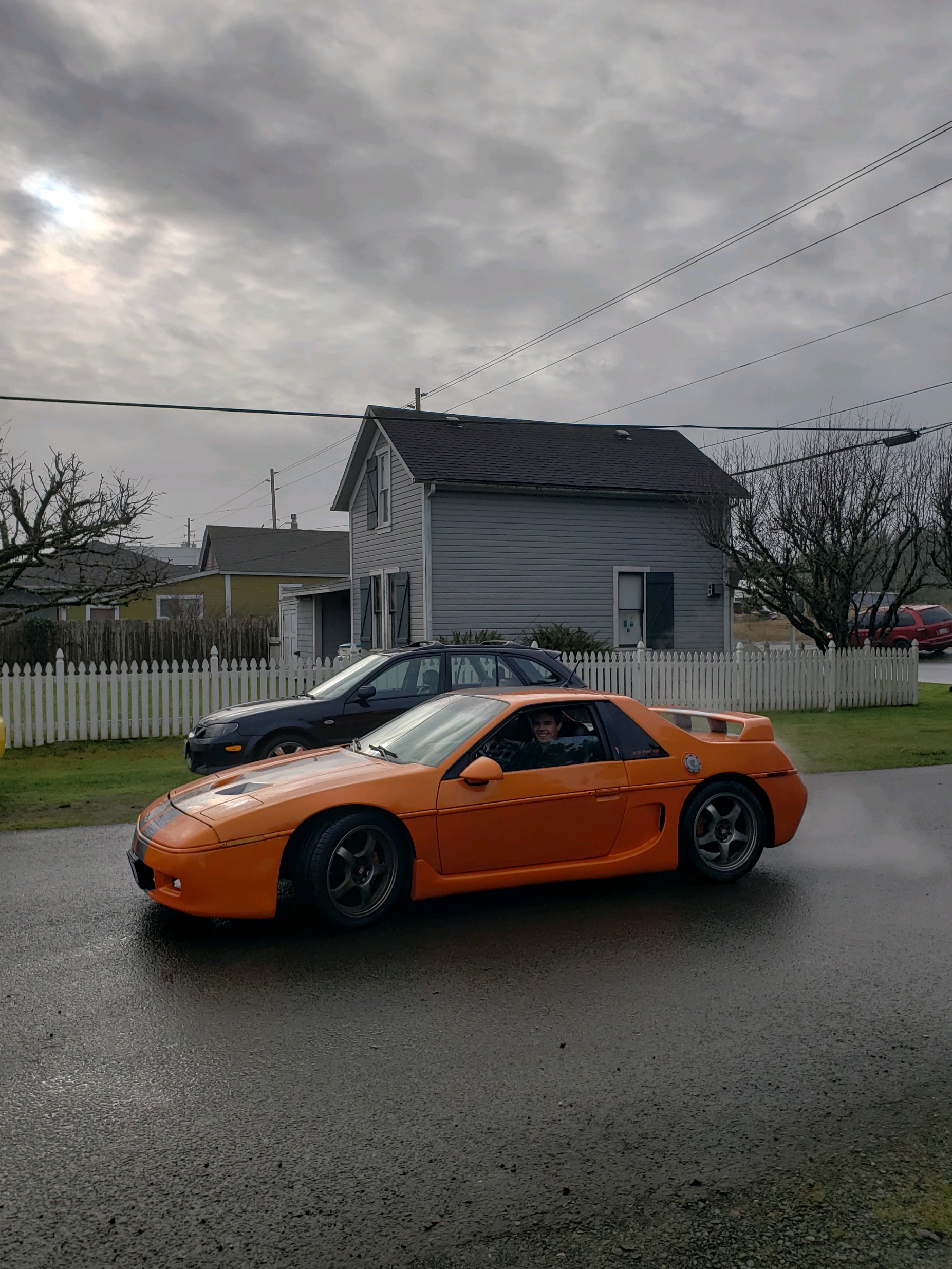 Brandon owned the car for 2 months in Arizona. He had to sell it because his parking arrangement was revoked. It came back to Seattle. The new owner took it to work this morning to show it to his co-workers and this happened to him. He was fully stopped when the car behind him slammed him into the car in front. He will buy it back from the insurance and use the parts on one of his other Fieros. The important thing is he was not injured. Fieros are tough.