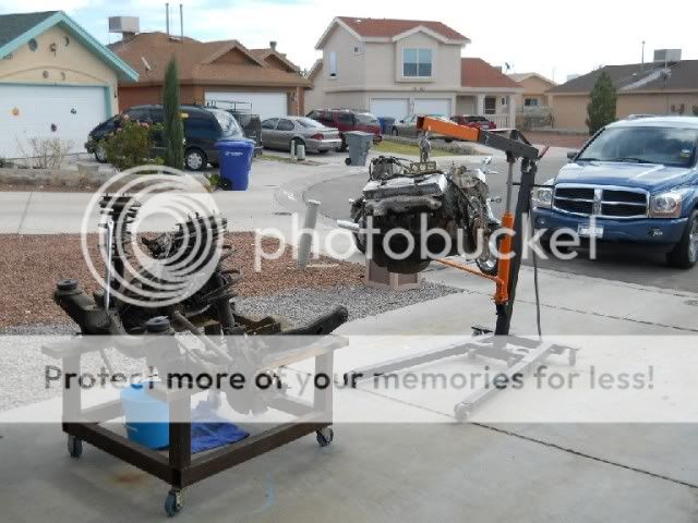 Anyway, I seperated the 350 from the trans this morning. My goal was to flip her upside down and pull the pan but I got side tracked woth the Bus.