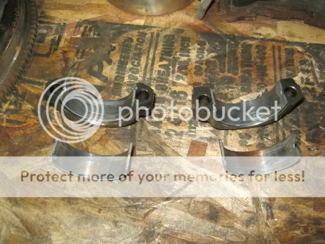 Today I pulled the pan off the 350 out of the Coupe. I was surprized to see it is a 4 bolt - but that's the good news. I pulled the Number 1 and 2 rod caps - sure enough, the bearings are shot and the crank is not good. I checked the bearings - they are 020 over sized! Not sure if the crank can go another 010 or not. PLus whoever put this motor together did a hack job. Looks like a couple different style rod caps - maybe rods. Only a couple had been numbered - the number 7 piston is in the number 1 hole and the number 3 piston is in the number 7 hole plus it looks like not all the rod caps were oreintated correctly. It will have to be torn down and done right - maybe a new crank too! It never ends.