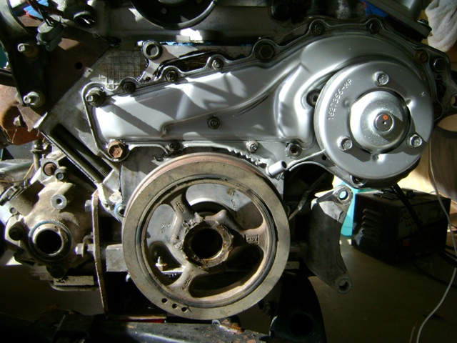 Don't forget to tighten the three water pump pulley bolts before installing the engine in the car.