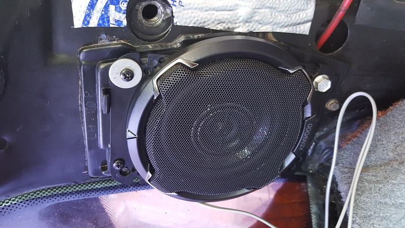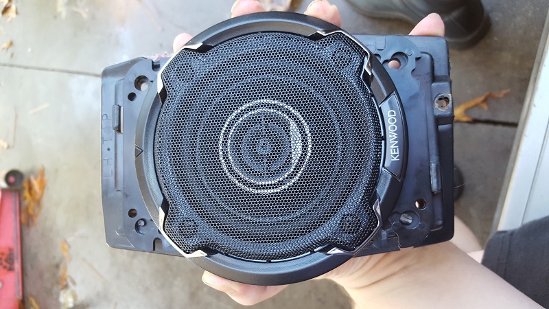 On the other side, I removed the shroud... admittedly by dropping the speaker when trying to get it out of the plastic. It looks like it fits better. BUT I had to put washers between the back of the speaker and the adapter plate, or the adapter flexed and wouldn't mount flush to the b-pillar!!