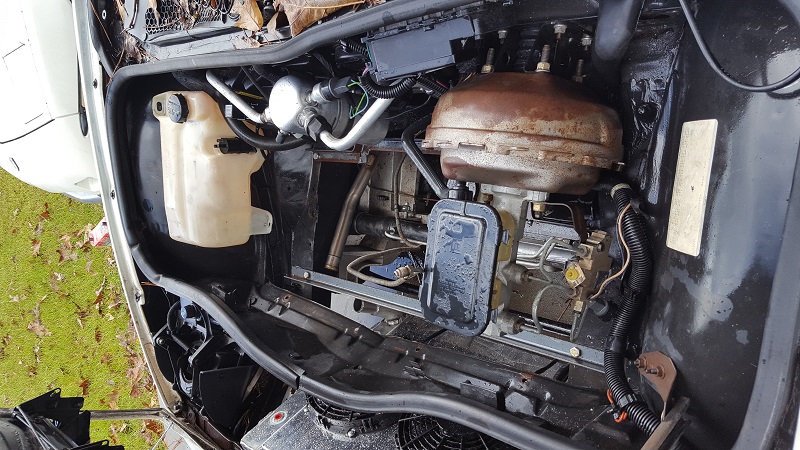 I also did manage to get an '84 Windshield washer fluid tank super cheap on ebay, so took out the higher capacity one and put this one in for now. This is to give more room for the intercooler water tank up front.