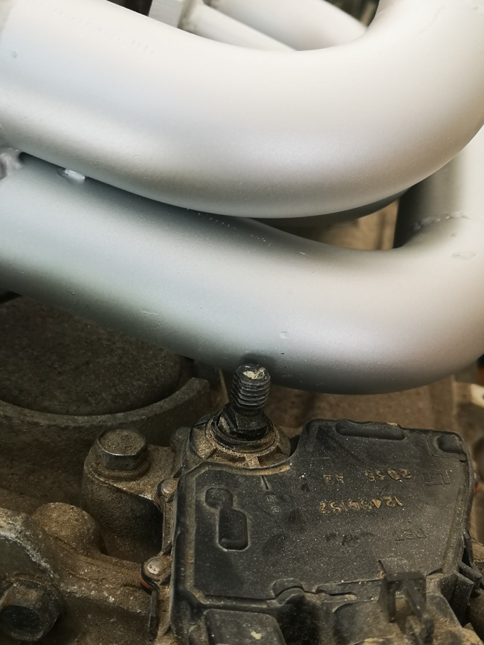 I dropped the engine and cradle the other day to do the final run of wiring and final cleanup for the engine bay. At the same time I removed the fuel tank. I’m replacing the expensive Holley High Performance external pump and going back to the stock location with a Walbro HP pump the only reason is that it was just too loud. I also removed the stock 3800 exhaust that I Jet coated a few years back I was really happy with how much cooler it ran but the flow master muffler I was running which is the one used in most 3800 swaps was to loud for my wife to ever ride with me . Because the stock 3800 exhaust exits to the rear of the engine it limited muffler location. Don O gave me a set of SS headers he no longer needed I had them ceramic coated and luckily they dump in the Fiero OEM allocation and exhaust run. Everything mounted perfectly until I went to mount the transmission electronic shifter controller. It was just to close to the headers to safely leave . After speaking with Don I find out the headers we for a standard not auto , so I need to find a new location to make everything work safely.