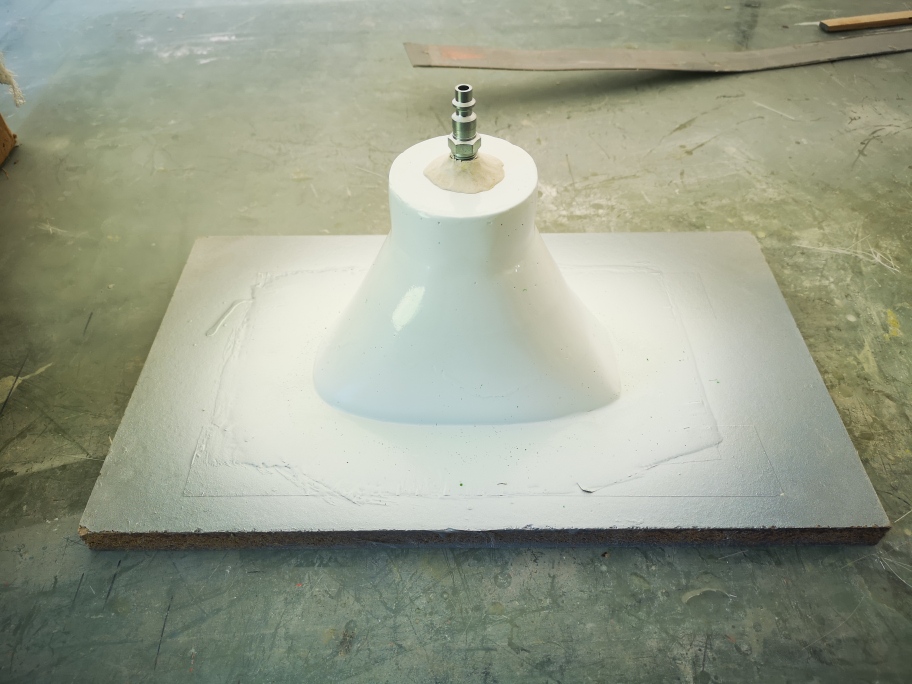 Then sprayed with with white single stage paint and using clay to seal and attach a air connector .