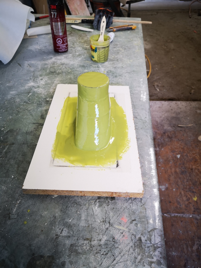 Then attaching to a piece of melamine board , I painted the foam with a coating of Rondo. I let it completely cure for a couple hours and sand to a 220 Grit finish.