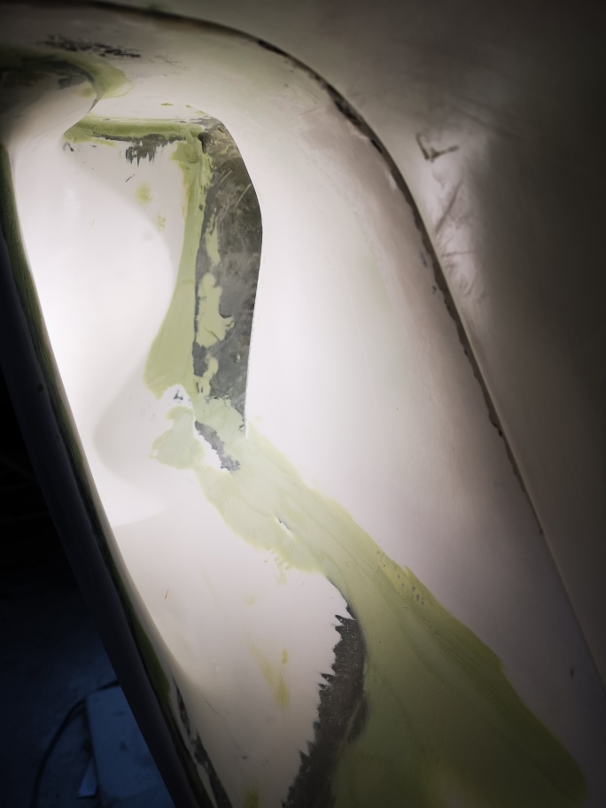 He said to put them in place, glass them solid, then with a very thin sawzall blade, cut them out the way they should've been in the first place!