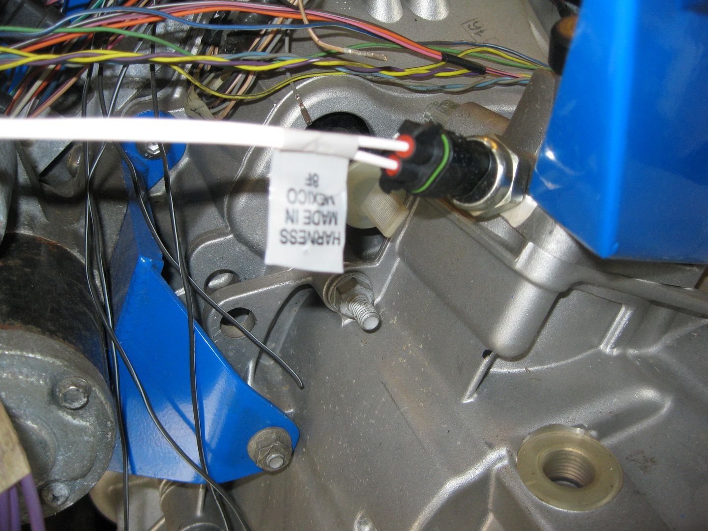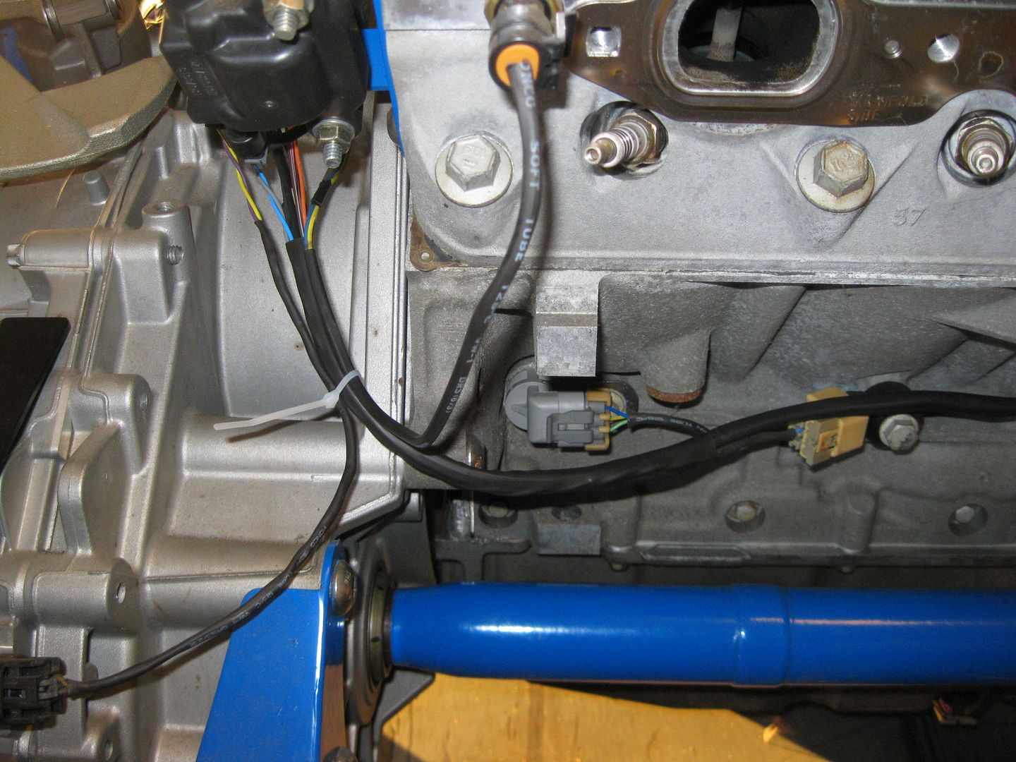 So far the Cam Sensor, Common Ground, ECM O2 Sensor, Oil Level Sensor, B2 Knock, and Crankshaft sensor have been loomed in heat shrink with the VSS and Temp portions getting ready to joint the harness. Lots more to do and the wires will start being added like crazy with the 4 coils and 4 injectors being added before reaching the center of the engine. The the ECM Oil Pressure sensor, DOD connector, MAF, DBW throttle and reverse lights at the center of the engine, then 4 more injectors, 4 more coils, map sensor and starter down the other side, then to the oil pressure sender for the gauge cluster, B1 knock sensor, alternator, and AC compressor.