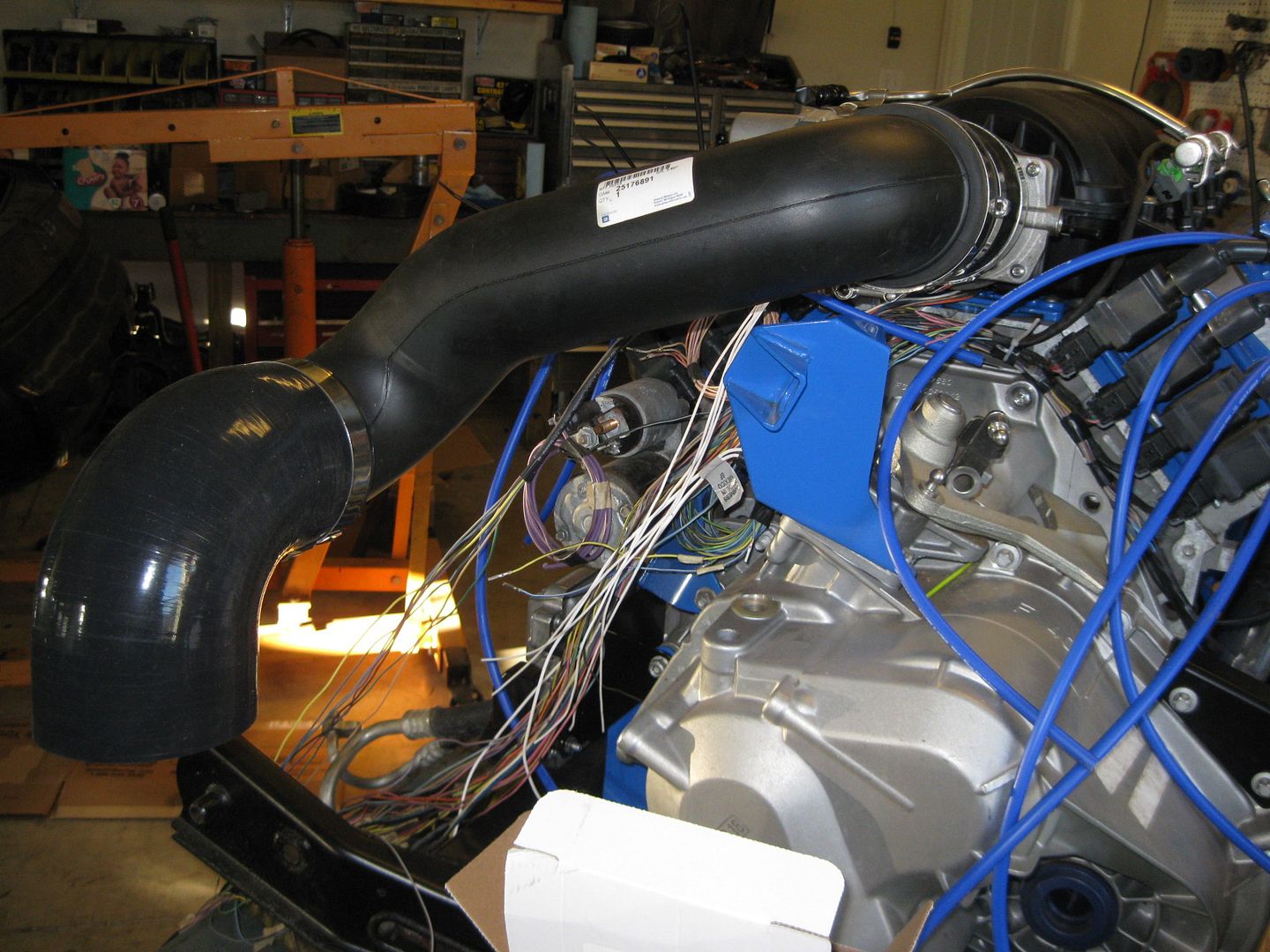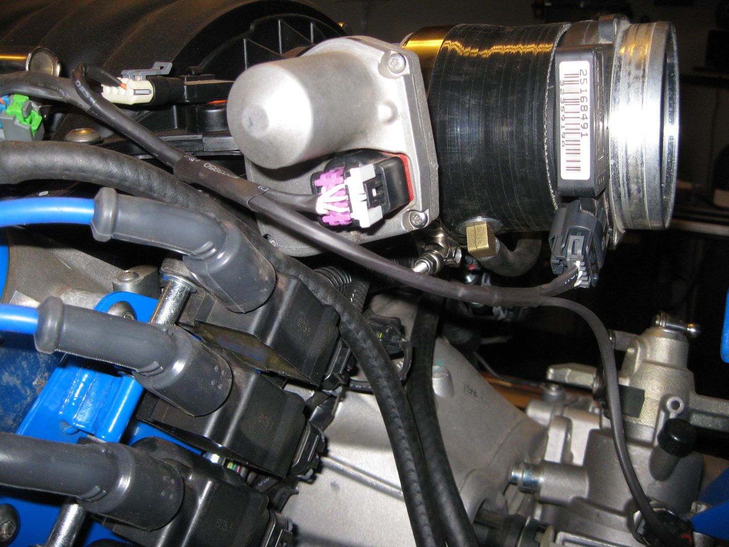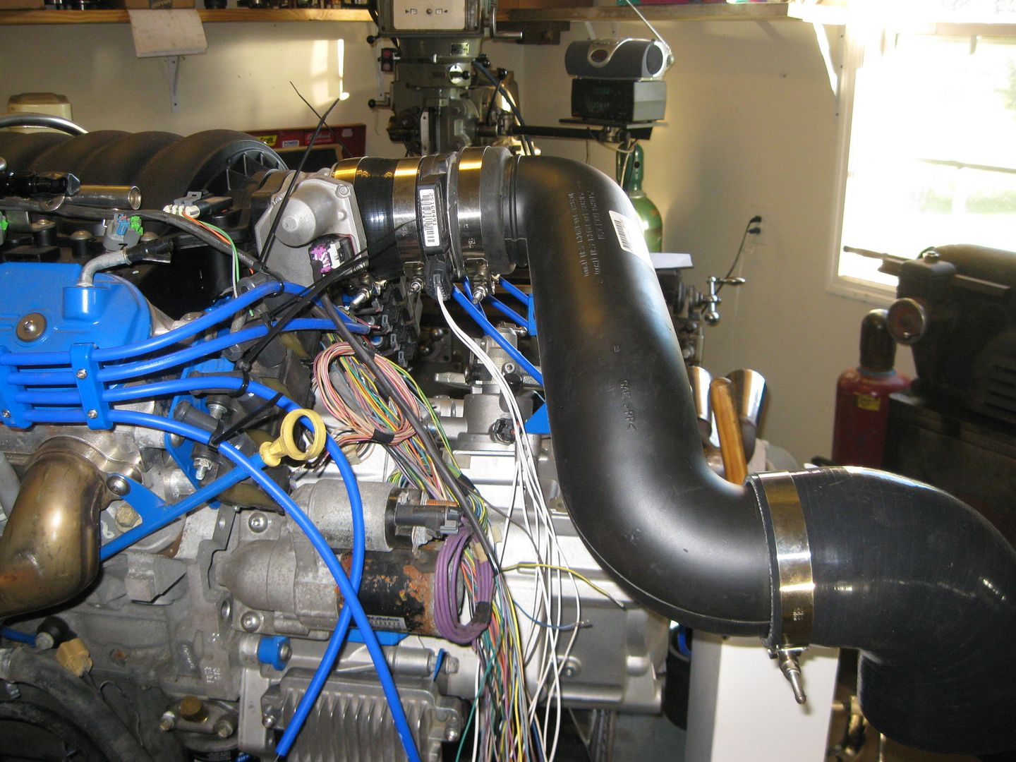 The fresh air source was a little bit of a challenge. The stock LS4 has the clean air source for the PCV system pulled from the inlet tract between the MAF and the TB, but this OEM piece will not work with the larger MAF and LS2 TB: