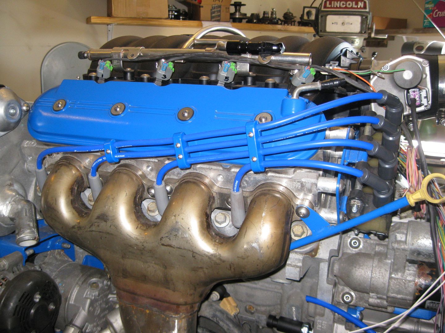 Then I started to play around with the routing of the plug wires. I mocked each side up slightly different as I determine which one I like looking at. Here is the front side. The wires are stacked on top of each other and remain stacked while they meet up with the coils: