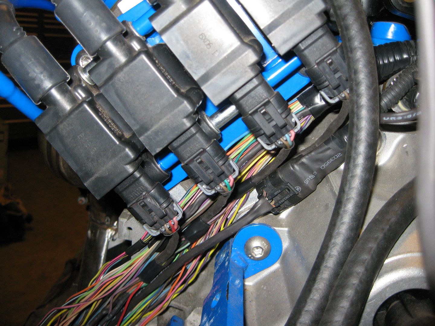 The rear side is slightly different in that the wires pretty much lay over as they turn to the coils. This setup ever so slightly covers the corner of the valve cover.