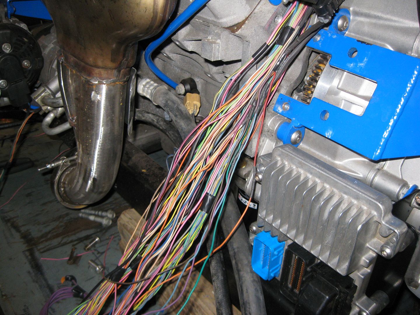 Did a little more on the harness. Everything on the rear and top side is loomed down to the starter. Still need to loom up the front side (alternator, AC, Knock, Oil Pressure), then I can start the termination process at the ECM, then install the engine for all the terminations inside the car (500, 203, Fuel and AC relays, DBW pedal, etc).