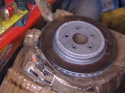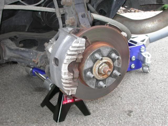 Although the shop touched up my rear brakes with new calipers and rotors, as well as some paint, the front brakes were the same old. A friend here on the forum, Sabre49, and I decided that we should clean up our brakes and paint them. The following pictures are the progress of detailing our brakes. It's hard to tell who's car is who's but we did the exact same thing: