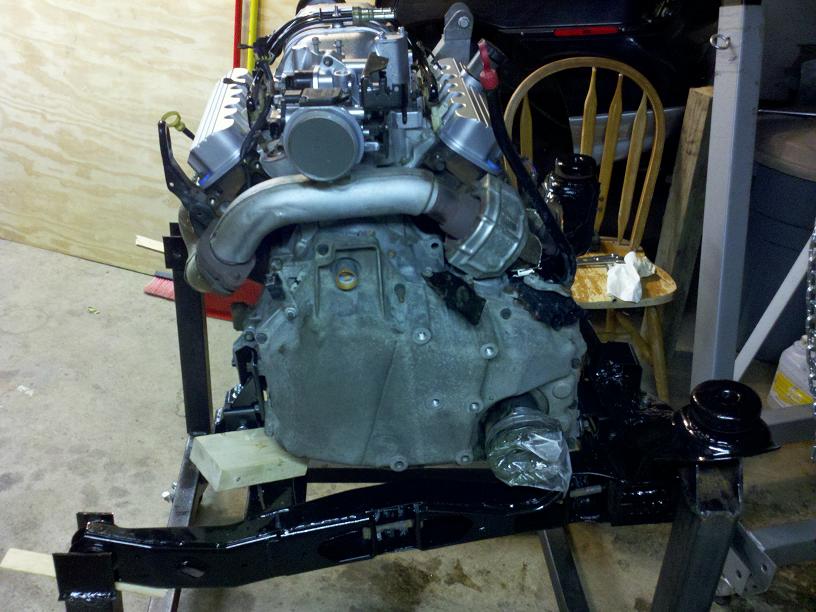 Still haven't gotten my cradle bushings, I got tired of waiting so i did this today. I still have to match drill the motor mounts to the frame. I decided to delete the EGR also.