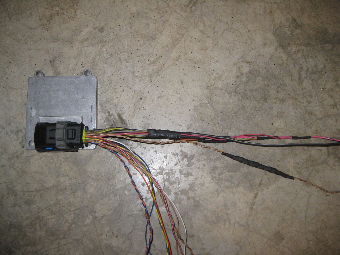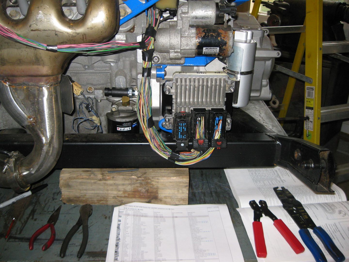 The center connector on the ECM is now fully compete. The other two still need quite a few wires from the other various components that will be in the console/foot well/brake booster area.