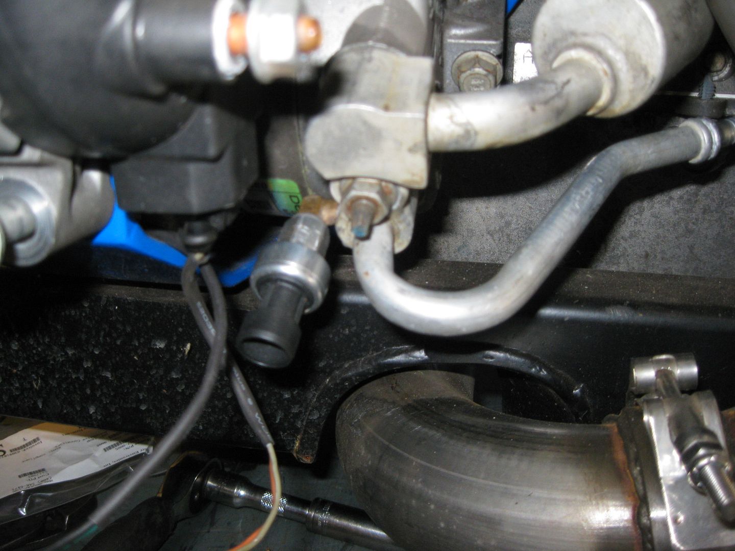Plenty of excess wire for when the sensor is installed in the booster. The raised flat circular surface will be drilled for the new sensor: