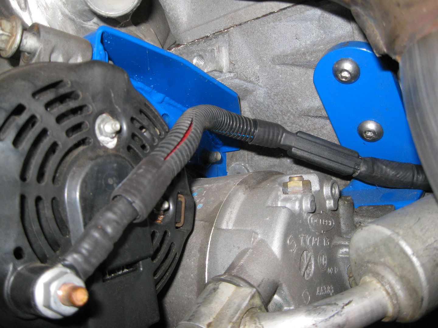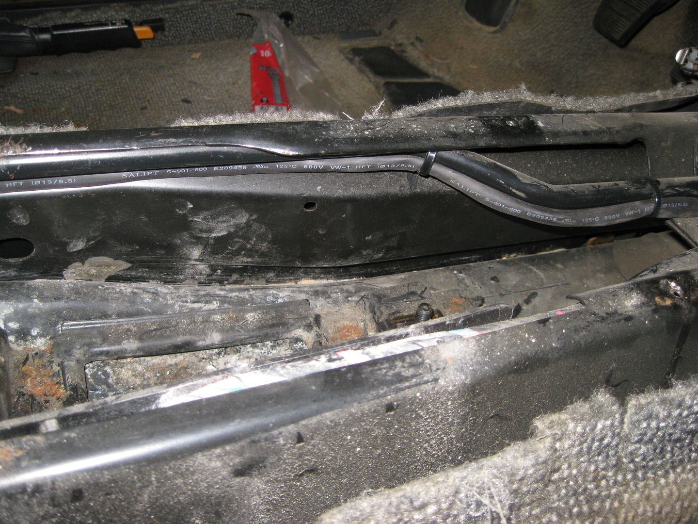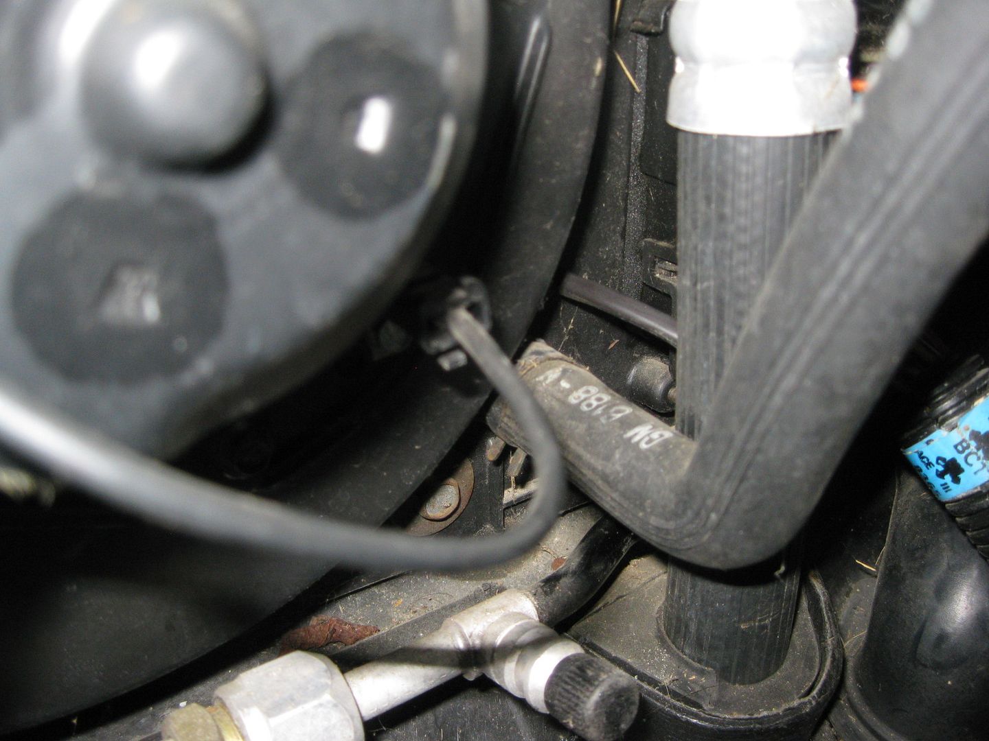 It is hard to see in this picture, but the harness comes through the firewall and goes under the C100 and under the brake booster to the other side: