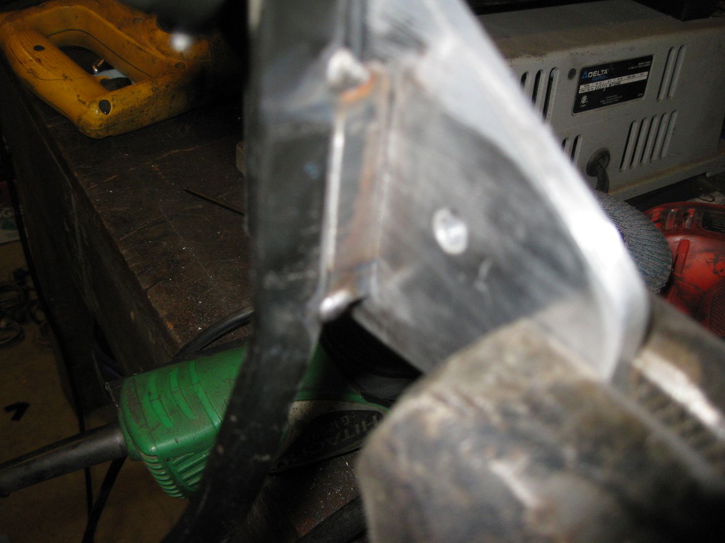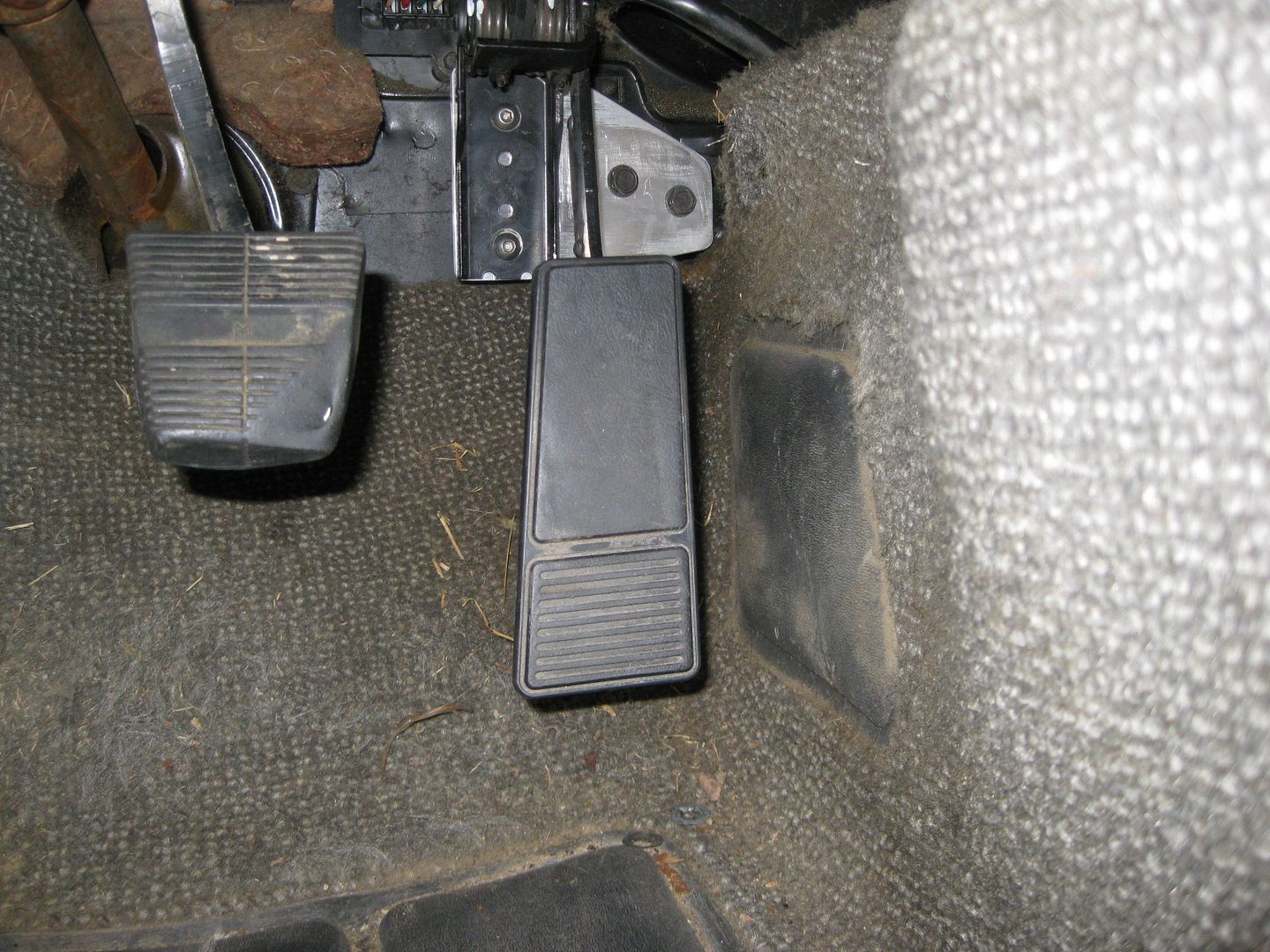 Since I removed the primary throttle stop, I welded on a new one. It is just some 3/16" steel the proper thickness welded to the backside of the throttle pedal arm so it will bottom out against the aluminum bracket.