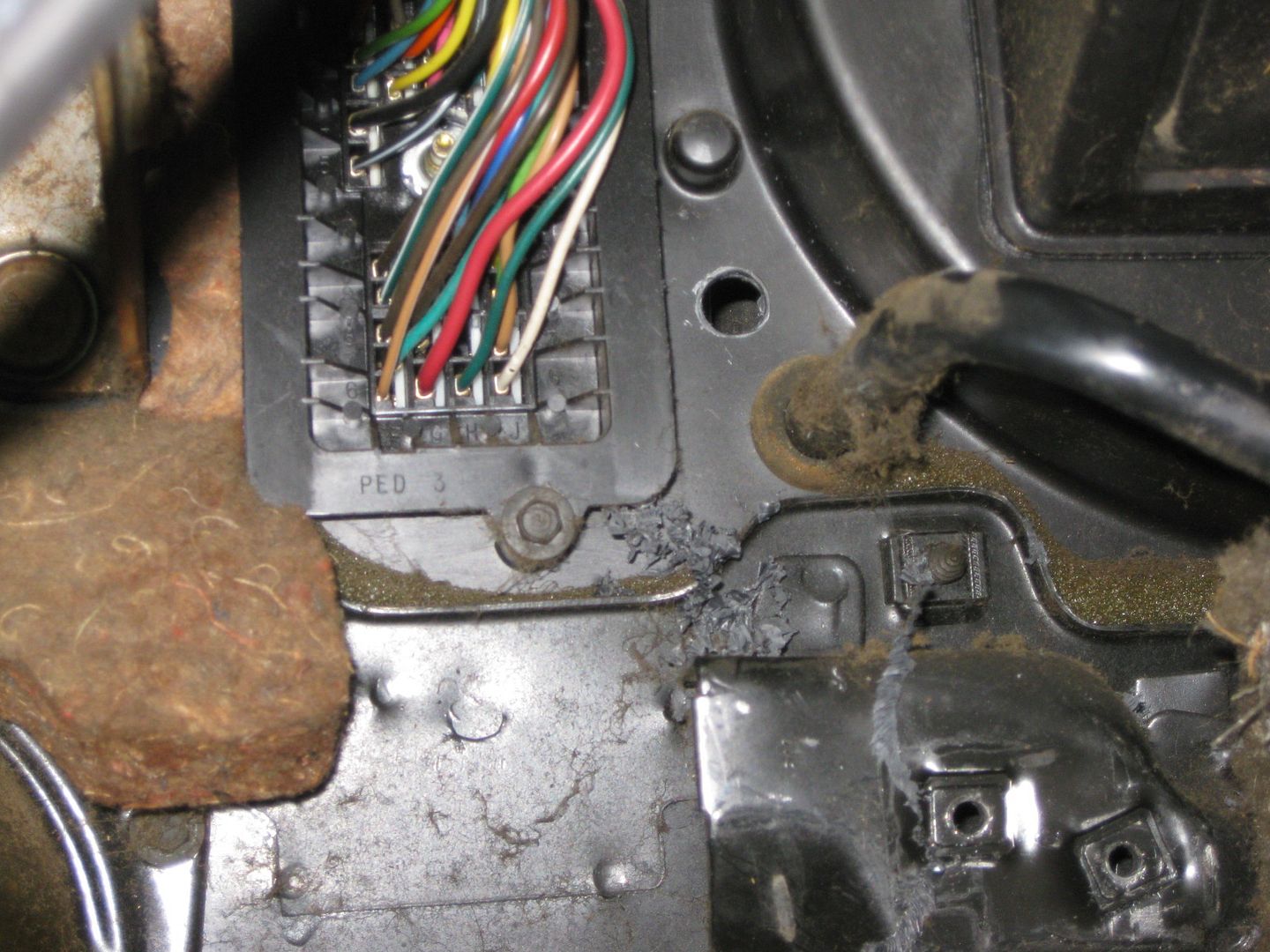 Drilled a hole in the plastic HVAC panel right by the C100 connector for the brake booster harness to pass through: