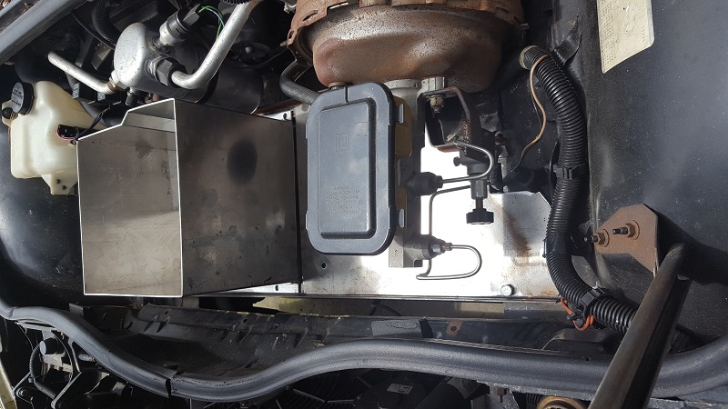 His goal is to get the front mechanically done in the next few weeks. That will just leave the skid plate for the front, and duct-work to push air into the heat exchanger, radiator, and AC condenser.