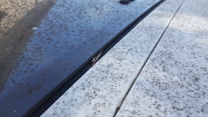 And also found the sunroof has another small leak, this one is from the seal just being too hard and shrinking some. I noticed a slight dampness in the car, and then noticed that pine needles had worked themselves under the glass. That's pretty impressive! So when I replace the rails with the awesome stainless steel ones I have, I need to get another seal.
