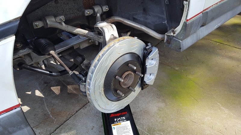 At Mikes last Saturday. He had finished disassembling the whole front setup so we could clean everything, and put some parts aside to be powdercoated (brackets, calipers, caliper brackets... water tank will eventually go, there will be other trips).