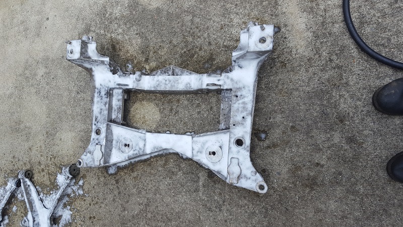 I was a little dumbstruck. I could see it, but I was having a tough time processing it. It sunk in when Mike gave the car a little push and it rolled. It was a really awesome moment for me. We decided to give the car a much needed bath, so that was done. Then Mike had me start taking apart the rear suspension on the passenger side, so he could start doing some final welding, we could mount the brake calipers, and I could replace the rear hubs.
