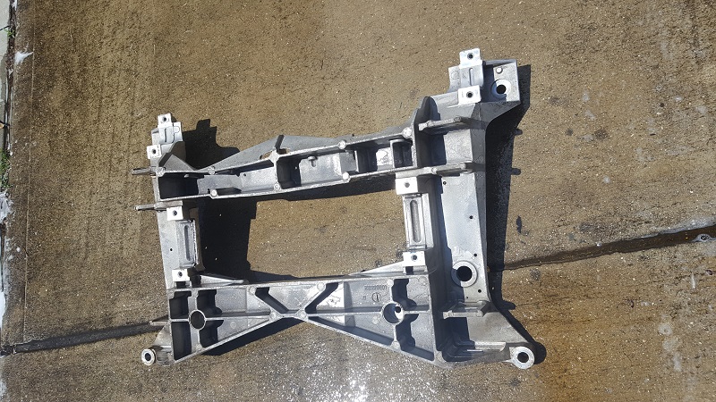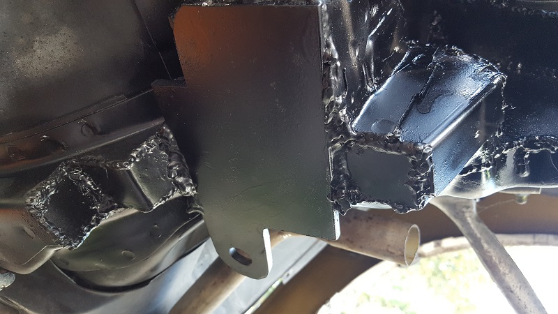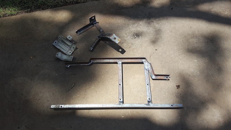 Lastly, a picture of some of the other mounts that Mike is test fiting for the cradle, and the bits he is starting to fabricate to box-off/close up the holes in the frame that were made when cuting out the OEM mounting points!