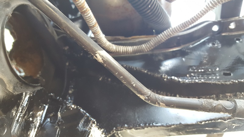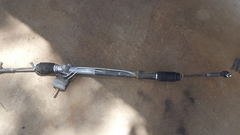 After the etching primer and epoxy paint dried, we moved the steering rack under the car again and bolted it up.