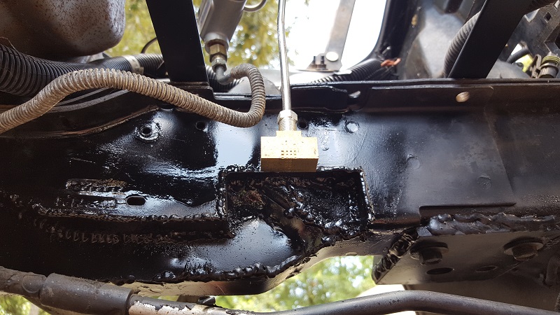 So back at Mikes, we get everything setup, and before we put in fluid, Mike wanted to make sure the pump works. We jump it... it makes a single little stutter and stops. Mike taps it with a hammer, we try again. No joy. Tap, try, tap, try. We double check out wiring diagram.