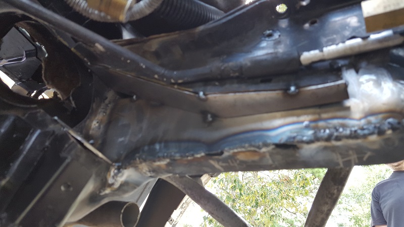 Check out that pretty weld. When he's got the space to move, Mike welds like a machine! As we progress in the back, more and more will get it's finish welds, starting with the suspension mounting points. You can see more of it a little further down.