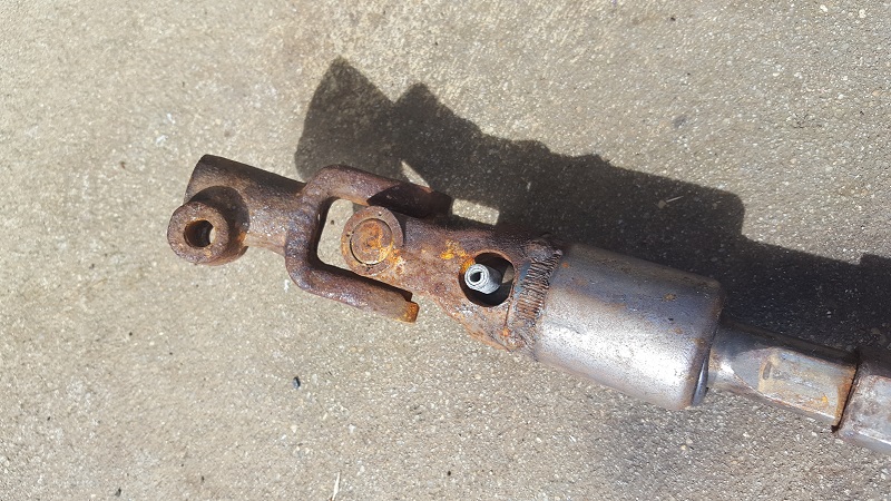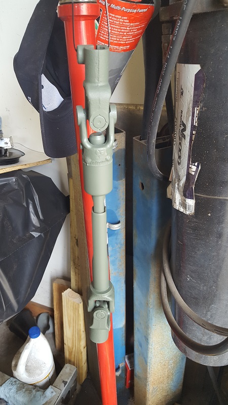 Then the last thing is I did was used the airgun and a brush attachment to get as much rust as I could off the surface of the steering shaft. Mike then painted it with an etching epoxy primer, and epoxy paint.