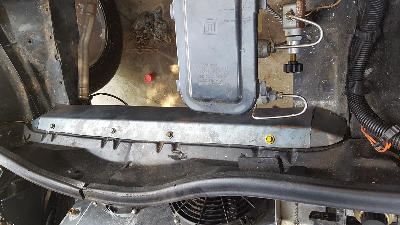 Alright, so onto other things! One of the yet-uncoated parts is a new 'shroud' that Mike made for the 'frunk'. This will close a gap from the front sheet metal down to the new 'frunk floor'.