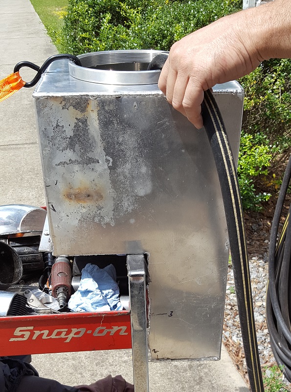 The tank has a "tail" that goes below the funk floor, to utilize as much space as possible and still give everything appropriate clearance. It also has a 7.5-ish inch cap/opening, to make it easy to put ice into it for track days.