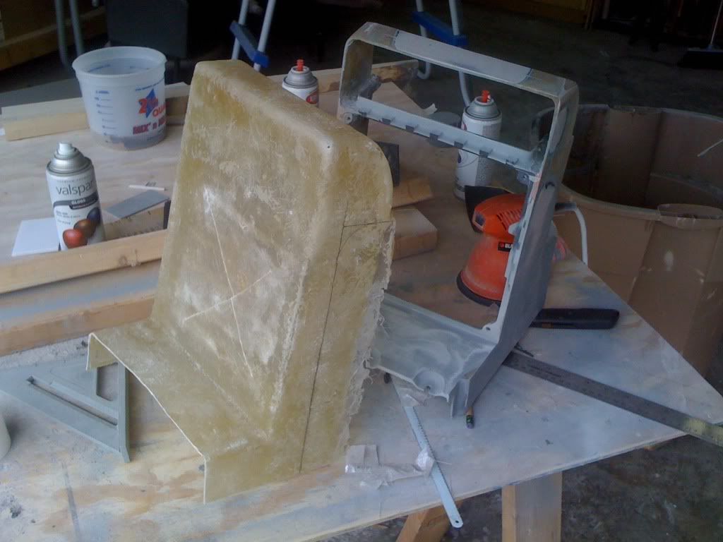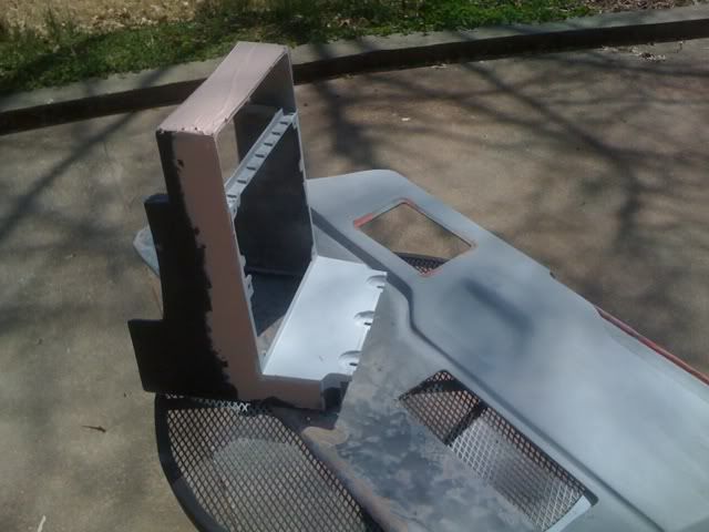 On to the console. I ran into a wall on this project. As you know I have to find a way to cover the gauges up top. The idea was to create a nice rolled cover going down the back side of the console. However, this is impossible to do with the consoles current configuration / design. The horizontal piece of the "stock" console - where the upper gauges mount - is directly in the way when removing / installing the console. So.... I either remove the horizontal part of the structural or I create an entirely NEW piece that actually covers the console - kinda like a lid - GREAT... another lid... LOL