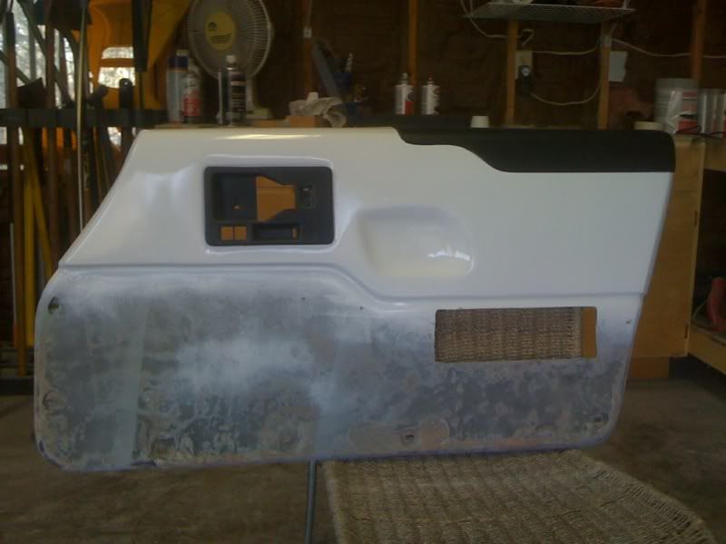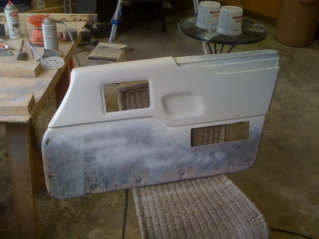After counterless hours of sanding I finally sprayed the first layer of paint on the door panel