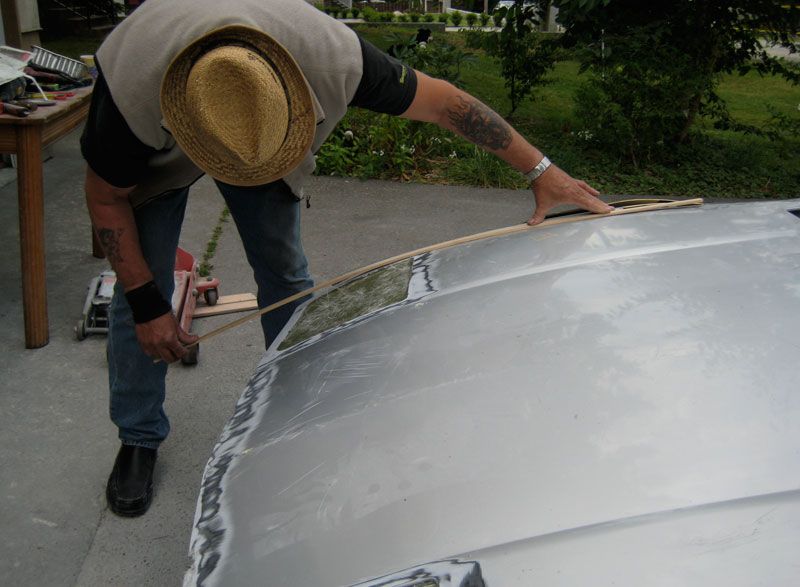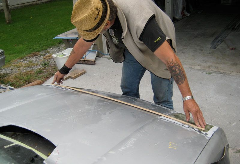 Getting ready to fiberglass hood (Pliogrip didn't do to well ) got hood bent and curved pretty good also glassed in headlight openings