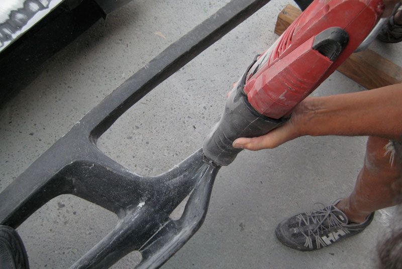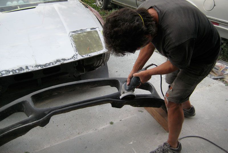 Cutting old Mazda bumper to separate bottom wing to visualize only (we will fabricate new wing)