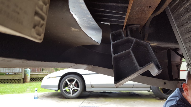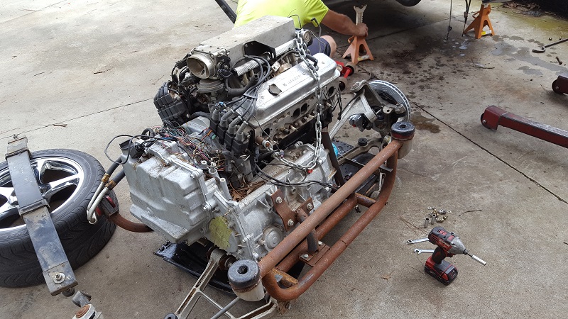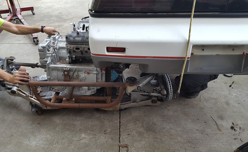 We used a couple car dollies under the cradle to slide it out through the wheel well, which was pretty nice. Mad things much easier.