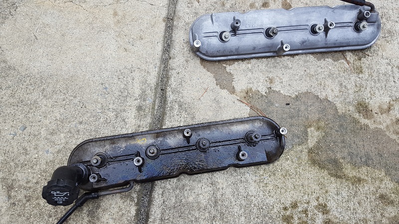 So besides taking pictures and (sometimes) being the tool go-fer, I had the very improtant job of cleaning all the gunk off the valve covers!