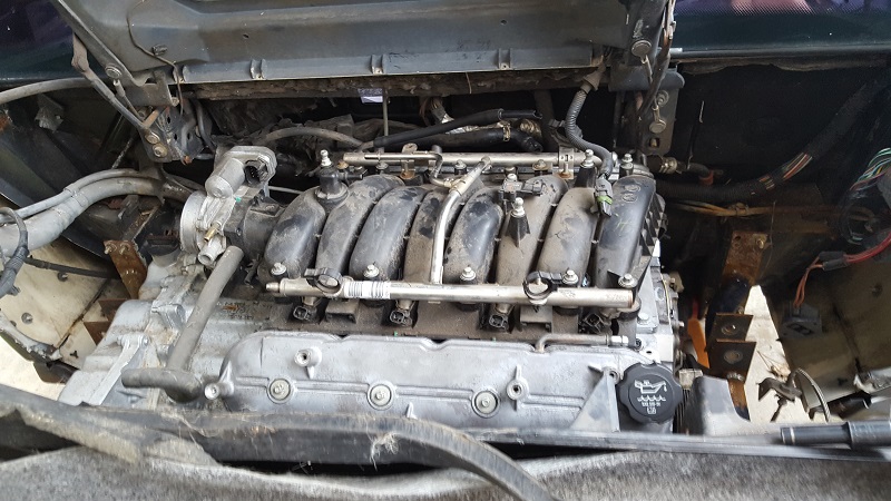 Without the lower frame rails, trunk wall, and strut towers in the way, you will have a lot more options than normal for water pump and accessory setups.