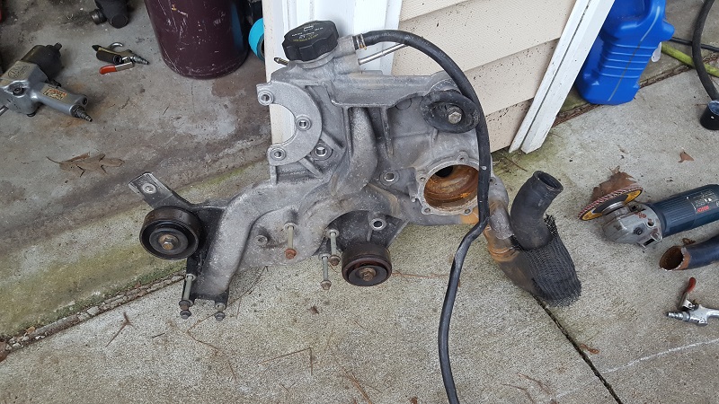 The last thing that's driving me nuts is this terrible water manifold/pulley setup the LS4 has. Look how ugly and convoluted this thing is!